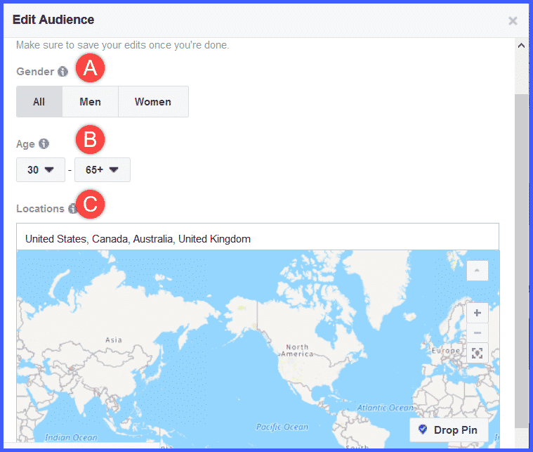 You can, of course, target just women or just men, if your brand, company, or product is specifically aimed at either men or women.