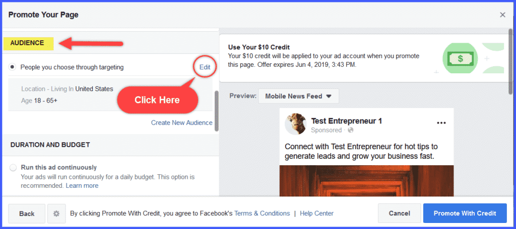 When you want to run more promotions for your Page, you’ll want to exclude people who’ve previously liked your Page. All you’ll need to do is enter your page name in the box and they won’t see any future likes campaigns you run.