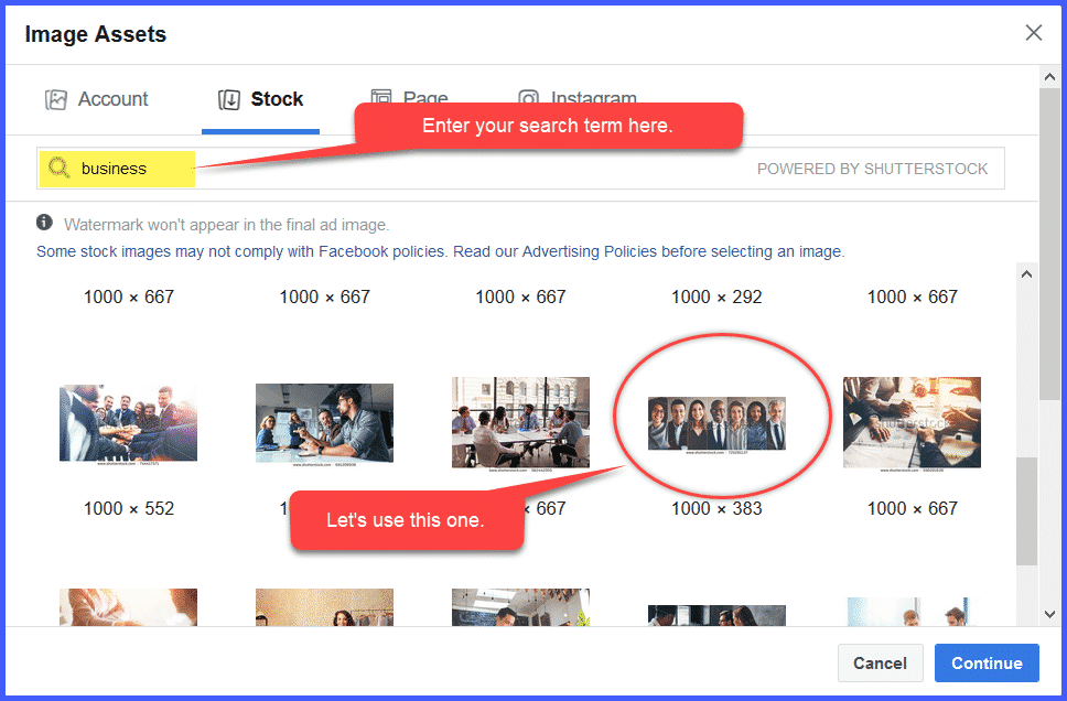 Of the images that display, we like the one with smiling men and women. (Happiness is good!) After all, visuals are critical to Advertising success.